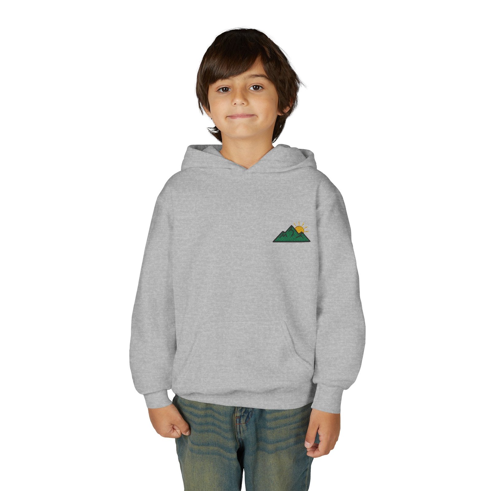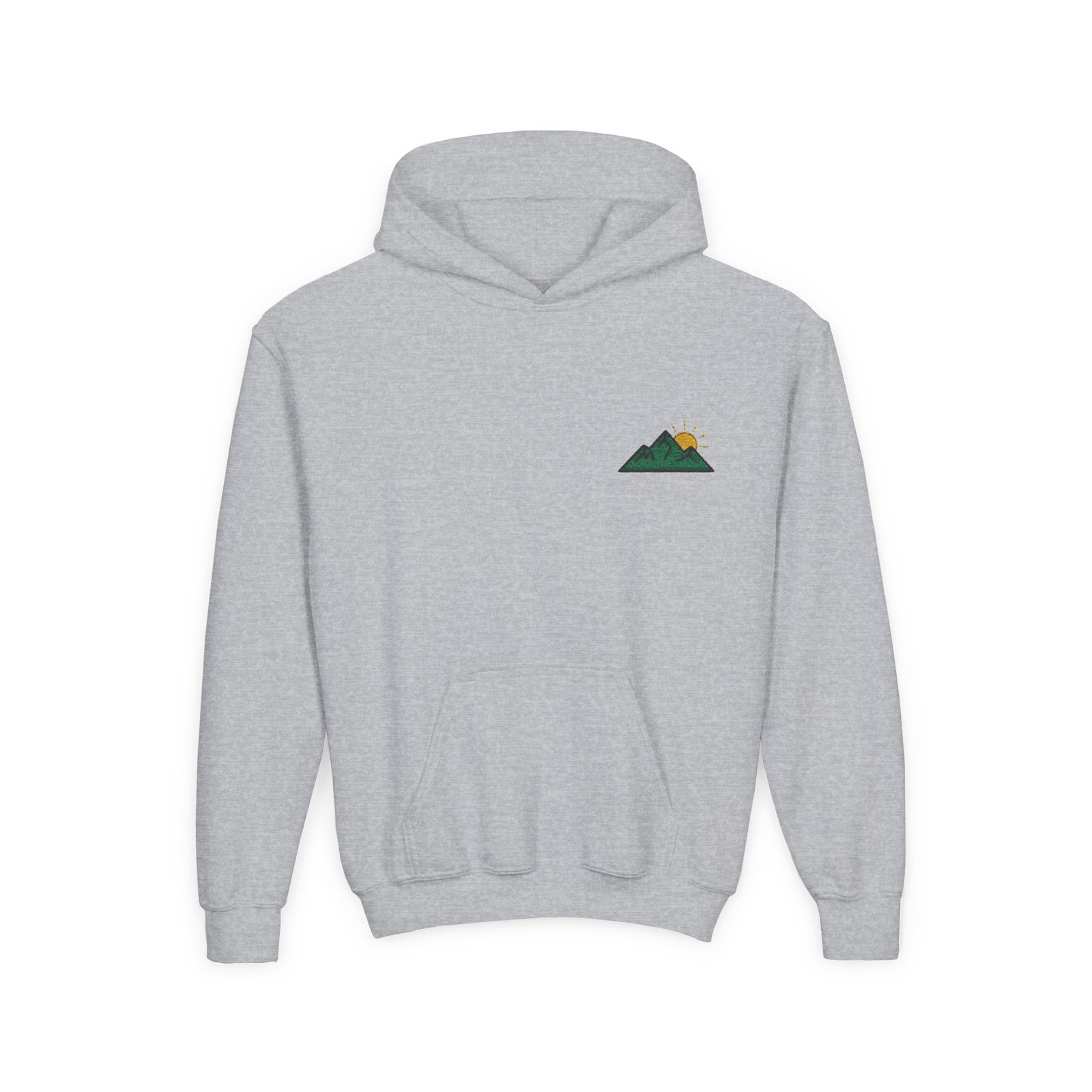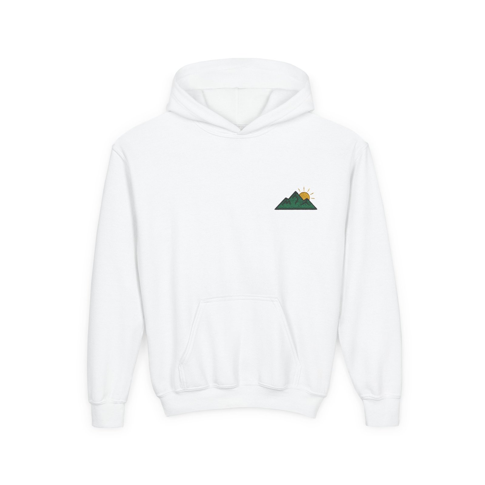 Soft, cozy, and quietly adventurous — this youth hoodie carries a small, embroidered mountain motif over the heart, like a secret patch of trail kids can tuck into. The medium-weight fabric holds its shape through playground climbs and weekend hikes, while the kangaroo pouch keeps chilly hands warm and holds snacks or treasures. Clean lines and a subtle chest design make it easy to pair with jeans or leggings for everyday exploring. It’s calm, durable, and ready for mornings at the bus stop, afternoons at the park, or family trips out to the ridge.